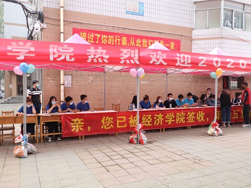 金秋送爽,丹桂飘香。9月25日,为迎接2020级新生的到来,经济学院提前筹划、精心部署,顺利完成新生入学报到工作。为使迎新工作既符合疫情防控要求,又能够顺利进行,在学院党总支领导下,学院周密部署新生入学接待流程,全体辅导员全天奋战在迎新工作第一线。团总支统筹安排做好迎志愿服务保障工作,做到全体服务人员既有分工又有合作,实现接待流程的最大程度优化。学院领导班子现场指导工作开展,并与新生进行了亲切的交谈。