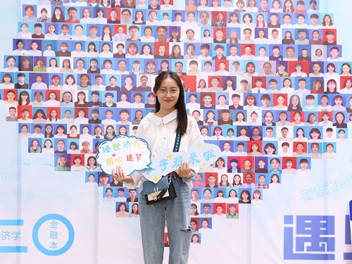 志愿者引导新生到达经济学院新生报到处后排队依序办理相关的手续,进行手部消毒、上交并确认入学资料,发放校园卡及防疫袋。此外,学院还开展了独立新生报到活动,鼓励新生自主办理入学手续,用自己的实际行动让家长放心。独立完成报到手续的27名新生获得学院 “独立新生奖”,并获得学院定制礼品。萌新们积极在学院精心制作的背景墙前合照留念,在零字班专属的校园卡相框内留下身影。整个迎新现场井然有序且热情洋溢。