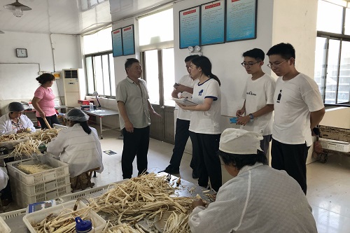 王雨萌:在实践过程中印象最深刻的莫过于参观小微扶贫站点。在小微扶贫站点工作的村民大多在60岁—80岁,他们的主要工作是刮桔梗皮、给桔梗劈丝,平均一天能挣70元,平均下来一个月能挣两千多元。这样一听感觉他们挣得其实不算多,一般我们大学生一个月的生活费少则一千多则两千,但是要知道,原来他们光靠着种地生活,一年到头也只能挣两三千元,而对于如今时代而言一年只能挣几千是很不可思议的。但有了扶贫政策,有了扶贫岗位,他们现在一年能挣一两万,平时花销不太大的话还能为后代攒下一些钱,这非常触动我们。