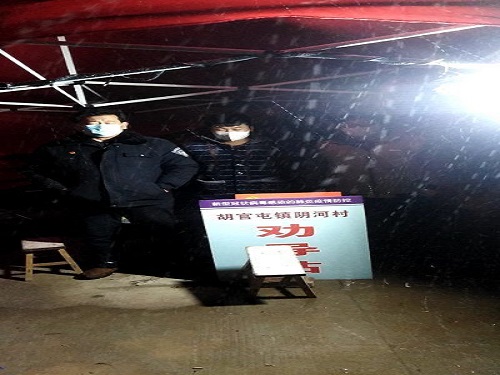 司庆辉:白天值班倒没事,夜里却有些煎熬,不过村民知道我们的辛苦,自愿给我们送来泡面和饮品。虽然条件艰苦,但为了全村的村民,我们没有一个人退出。令我印象最深刻的是一次值夜班的时候,当时天气温骤降,刚到傍晚就下起了雨,雨虽然不是很大,但却持续到凌晨夜两点,紧接着天空中又飘起了大雪,就这样大雪一直持续到天亮。虽然我们在室内,但依然能感觉到凉风袭来,看着雪花,听着风声,心里却是极其欣慰。12小时坚持下来,真的是筋疲力尽。尽管如此,所有值班人员兢兢业业,但丝毫没有因为环境的原因而退出。