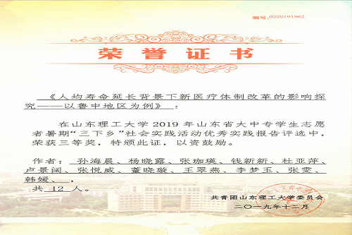 2019 年山东省青少年教育科学规划大学生学术课题结项,