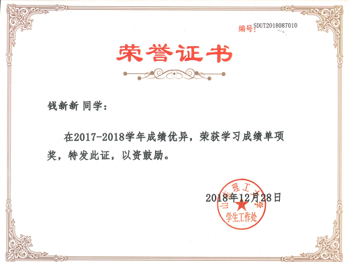 2018/2019/2020 连续三年学校学习单项奖学金,