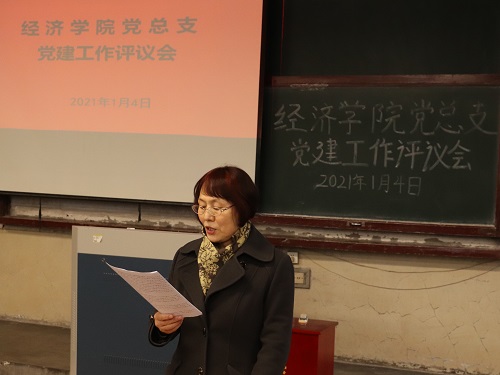 1月4日下午,经济学院党总支于东校区4104教室举行2020年度党建工作评议会。会议由校党委常委、副校长刘国华主持,学院党总支书记张双代表党总支报告一年来的工作,学院全体师生党员参加评议。