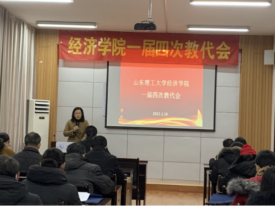 1月16日下午,经济学院在东校区4号教学楼316会议室召开第一届教职工代表大会第四次会议。会议由学院党总支书记张双主持,30余名教职工代表参加会议。