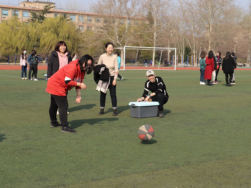 比赛正式开始前,由崔秀丽和魏媛媛阐述此次活动背景和目的,并邀请院长张红霞进行致辞。张红霞对女教师们表示节日的问候及祝贺,并宣布活动开始。随后,崔秀丽简单向参赛教职工介绍此次趣味运动会的比赛流程、队伍划分以及各队负责人,此次比赛共分为四个参赛队即国贸队、金融队、行政队和经济队,分别轮流参加足球射门、保龄“篮球”、托网球跑和呼啦圈比赛。