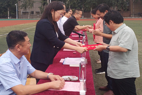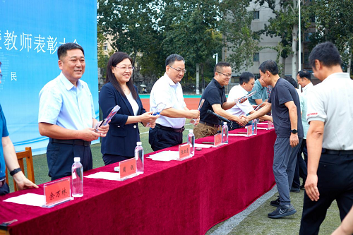 随后,老教师代表曹俊杰用“欣慰、骄傲、忐忑”三个关键词分享了自己33年来教书育人的感悟,发言情真意切。他倡议,全体老师共同深爱教师这份职业,勇挑肩上的重担,永不懈怠,无私奉献,保持一颗平常心,甘于寂寞、甘于辛劳、甘为人梯,努力做一名“爱学生、有学问、会传授、做榜样”的好老师。