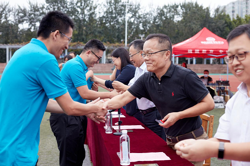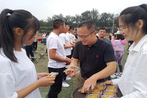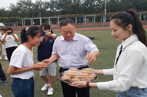 大会结束后,王立斌与学院领导班子一起,来到师生中间,为新入职教师和新同学发放月饼,向广大师生表达中秋节的节日祝福,并与新入职教师、老教师代表合影留念。