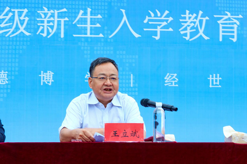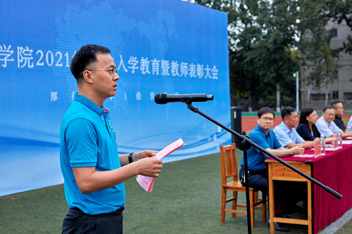 最后,副校长王立斌作了讲话。他代表学校向经济学院2021级新同学和新加盟的教师表示欢迎,向从教30年的老教师们致以崇高的敬礼,向受到表彰和被聘任的班级导师表示祝贺。