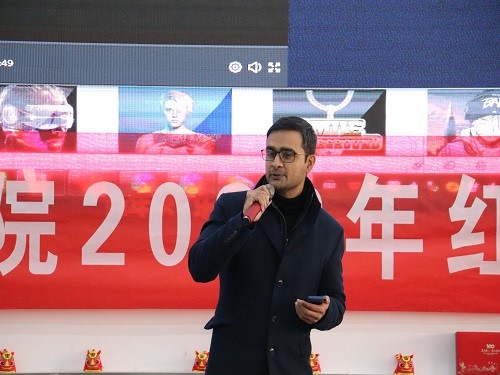 活动伊始,学院党委书记张双代表学院领导班子向教职工发表新年致辞,代表学院对全体老师表达敬意与感谢。他带领大家回顾学院2021年的桩桩喜事与傲人成绩,学院永远是每一位老师的温暖港湾,陪同大家一起成长、共创美好未来。院长张志新也向大家表达了新年祝福。