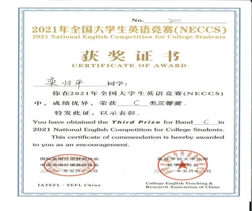 栾归平,女,中共预备党员,金融1803班组宣委员;学习成绩名列前茅,综合排名专业前5%;连续两年获得学校一等奖学金,并获得优秀团干部、优秀学生等荣誉称号。大学期间获得国家级奖励1项,省级奖励12项;获邀参加国际会Future Finance Conference Nanchang2021,并被其收录论文全文,推荐至SSCI期刊审稿;作为主要成员参与省级大学生创新创业训练项目并顺利结项。
