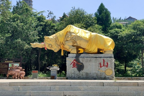 此次实践调研的金山,相传与泰山、峄山并称为姊妹三山,因“凿石得金而名”,素有“天下之中第一山”之誉,是历代朝山拜佛的旅游圣地。此次,实践团成员着重参观了王灵官、水城、月老阁、金山寺与金山观等景点。