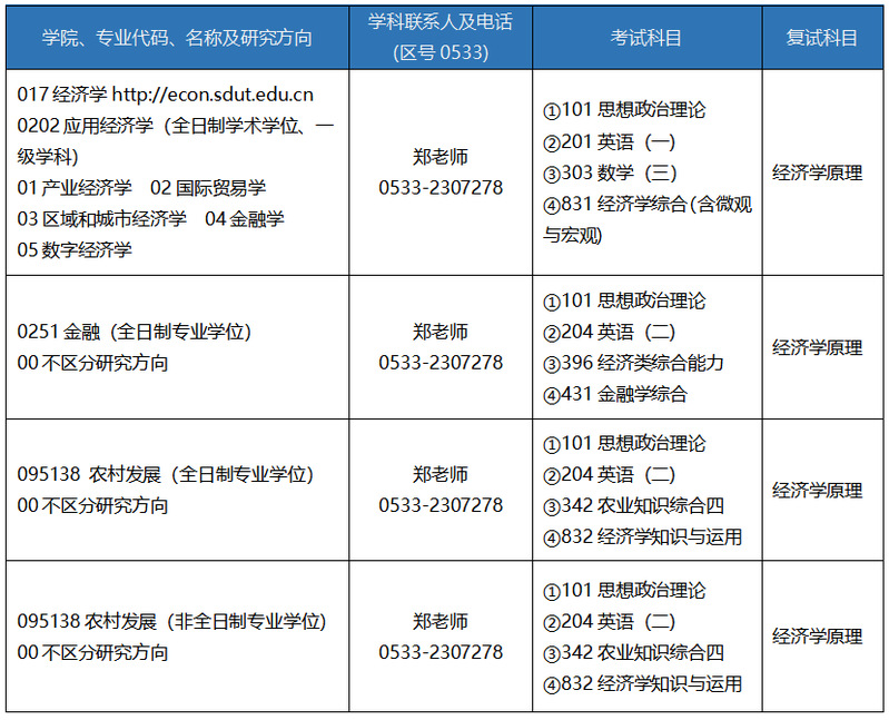 山东理工大学经济学院研究生办公室:0533-2307278(郑老师)山东理工大学经济学院研究生招生咨询群:QQ群号:744191632山东理工大学研究生招生办公室:0533-2782143