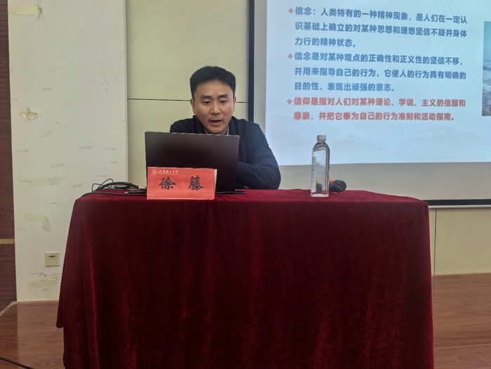 4月16日,徐藤以“理想信念教育”为主题,从理想信念的概念、理想信念的重要性、如何坚持理想信念三个方面详细讲解,并对党员发展对象如何早日成为合格共产党员提出了要求与期望。