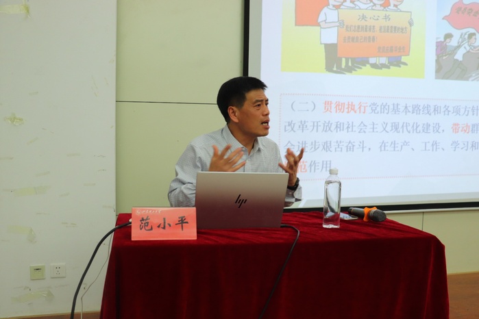 4月18日,范小平以“不忘初心,牢记使命,做新时代合格党员”为主题,从合格党员的内涵、党的性质、党的思想等方面对党员发展对象提出期望与要求,激励党员发展对象要不忘初心、无私奉献,争做新时代为党旗争辉的共产党员。