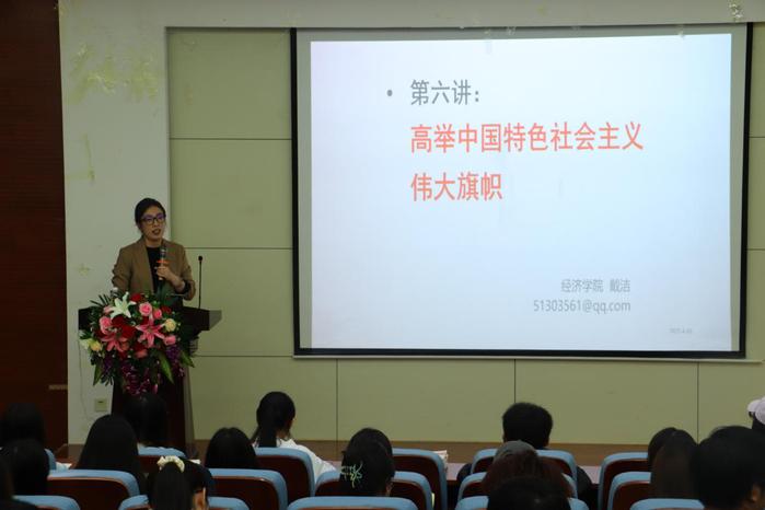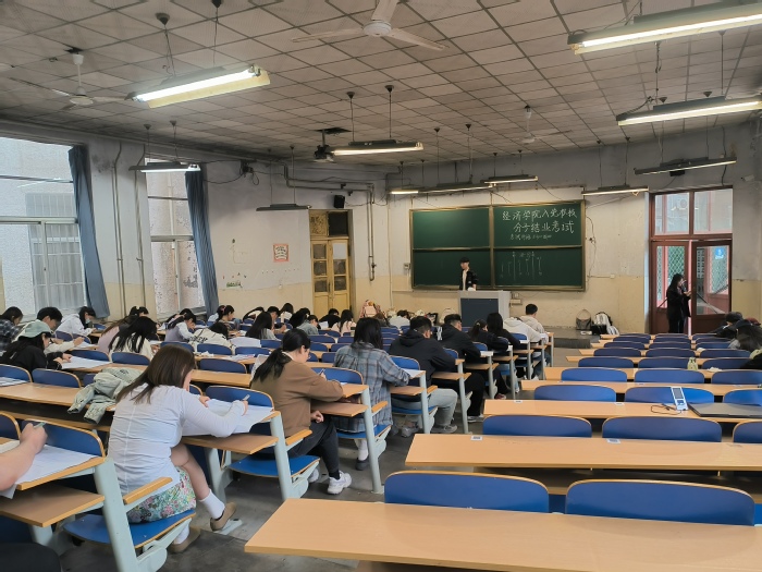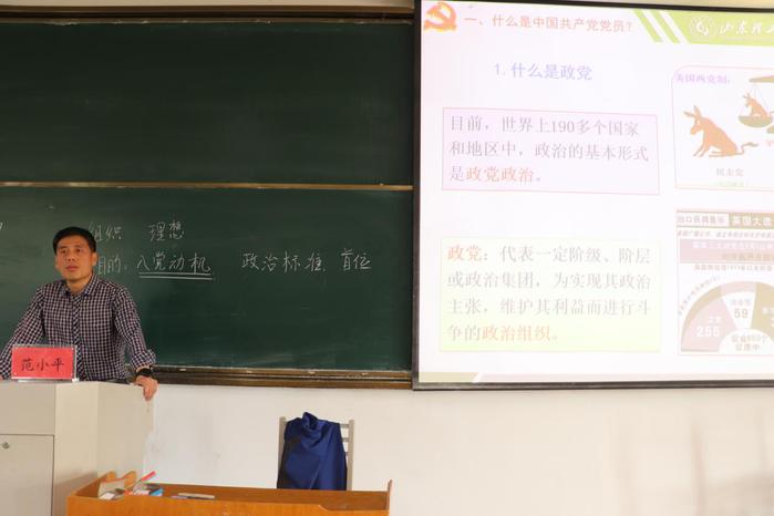 本次培训由经济学院党委书记范小平、党委副书记戴洁、管理学院党委副书记张佳、法学院党委副书记宋立平、物理与光电工程学院党委副书记杨晨、马克思主义学院副教授郑炳心主讲,学院90名入党积极分子参加。