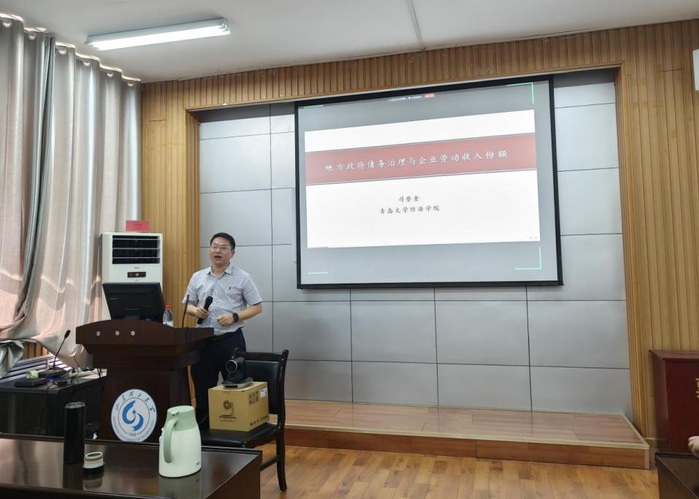 司登奎以《地方政府债务治理与企业劳动收入份额》为题作学术讲座。他重点阐述了地方政府债务治理对宏观经济增长以及微观企业行为的影响,并深入分析了其在实现“防风险”与“稳增长”双重目标中的关键作用。司登奎指出,债务治理改革有助于优化企业融资环境、提高资本配置效率,进而促进企业劳动收入增长,并对企业创新和风险投资等产生积极影响。基于实证研究结果,他提出了针对性政策建议。在互动环节,与会学生踊跃提问,现场学术氛围浓厚。