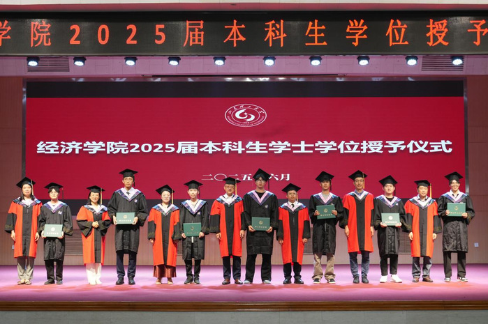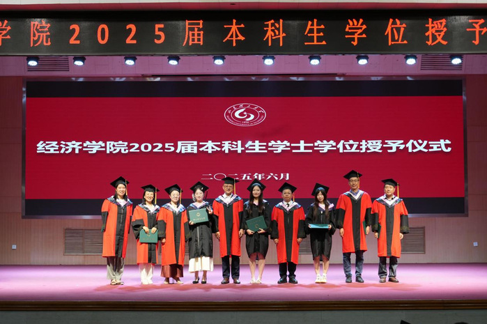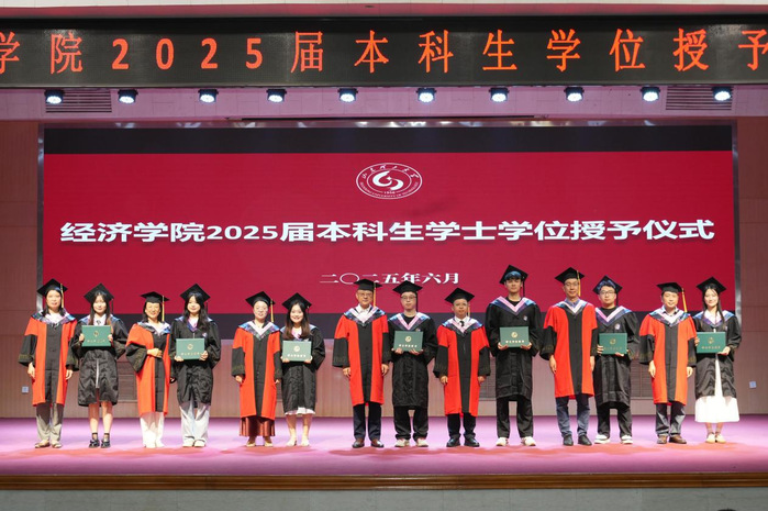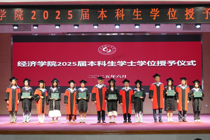 此次学位授予仪式,不仅是2025届本科生学习生涯的重要里程碑,更承载着学院对学子们秉承经世济民精神、勇担时代使命、投身国家建设的殷切期望。衷心祝愿全体2025届经济学子,带着母校赋予的知识力量与精神烙印,在人生的广阔天地中披荆斩棘,乘风破浪,前程似锦,未来可期!
