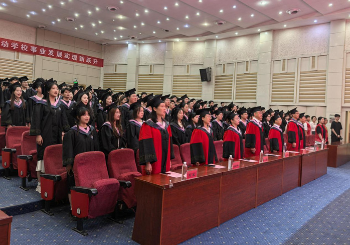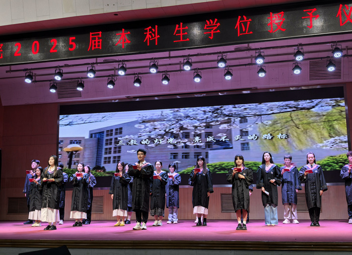 隆重的学位授予环节将仪式推向高潮。李平教授、张志新教授、吴石磊教授、高越教授、盛科荣教授、刘廷华教授、朱敏教授等八位教师代表,身着庄重的导师服,逐一为毕业生拨穗授位。毕业生们身着学位服有序登台,从导师手中接过沉甸甸的学位证书。这一庄重的仪式,是对他们四年不懈努力的最好回馈,也标志着他们开启人生新的篇章。