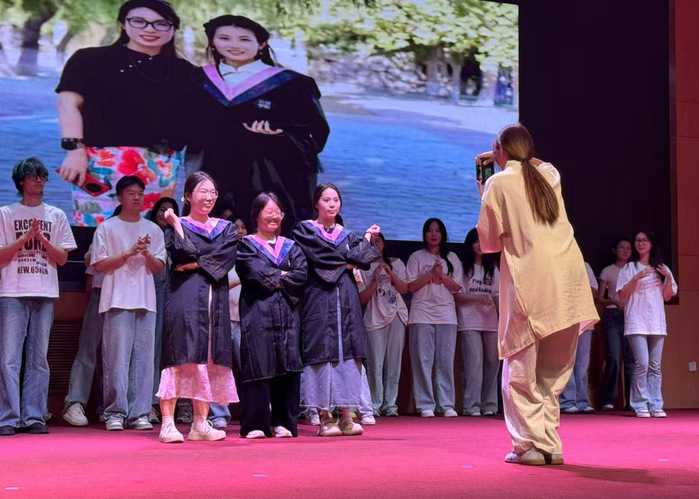 暖场环节的压轴之作,是学院为2025届毕业生精心制作的MV《干杯》,光影流转间,四年青春时光被浓缩成最动人的画面,那些欢笑与泪水、拼搏与荣光的瞬间,成为这段无悔青春征程最生动的注脚。