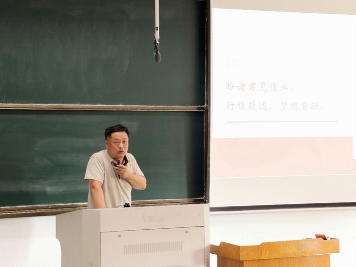范小平聚焦“为何考研”,点明考研对个人发展的重要意义及研究生就业的优势,敦促同学们尽早确立目标全力备考。他以生动比喻强调:“若期末考试是五公里长跑,考研则是马拉松,唯有用坚持磨练意志,方能抵达终点。”并衷心祝愿同学们勇攀高峰。