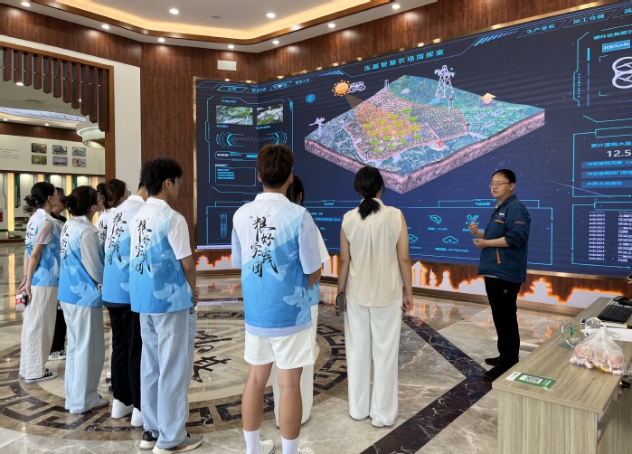 实践团深入参观了智慧农场2.0版本展示区。技术人员现场讲解并演示了先进的数字化管理体系,该体系通过后台数据建模,精准采集土壤湿度、肥力、气象等关键信息,再经AI分析生成科学的农事方案,指导农业生产。一线职工则可利用平台软件,实时反馈自身健康状况及生产进度,从而实现从种植采收到加工仓储再到流通销售的全流程智能管控,极大提高了农业生产效率和产品质量。