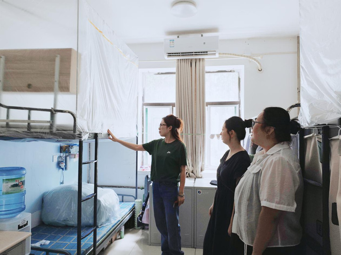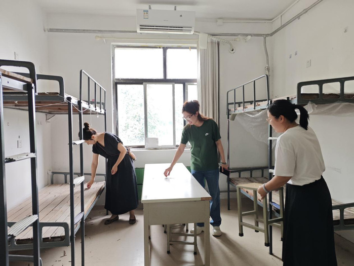 此外,老师们还前往新生宿舍区域,逐一检查宿舍设施与卫生清洁情况,为即将报到的新生做好准备,力求让新生踏入校园就能感受到学院的关怀与温暖。