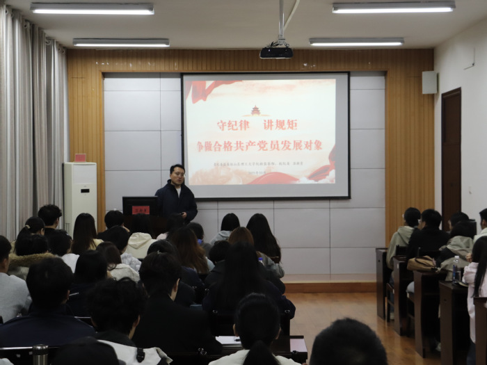10月16日,苏新勇以“党规党纪教育”为主题,从纪律规矩的定义与内涵、党章党规的核心要求、廉洁自律的实践路径三方面展开讲解,强调党员发展对象要知敬畏、存戒惧、守底线,以慎初、慎独、慎微等自我要求锤炼党性修养。