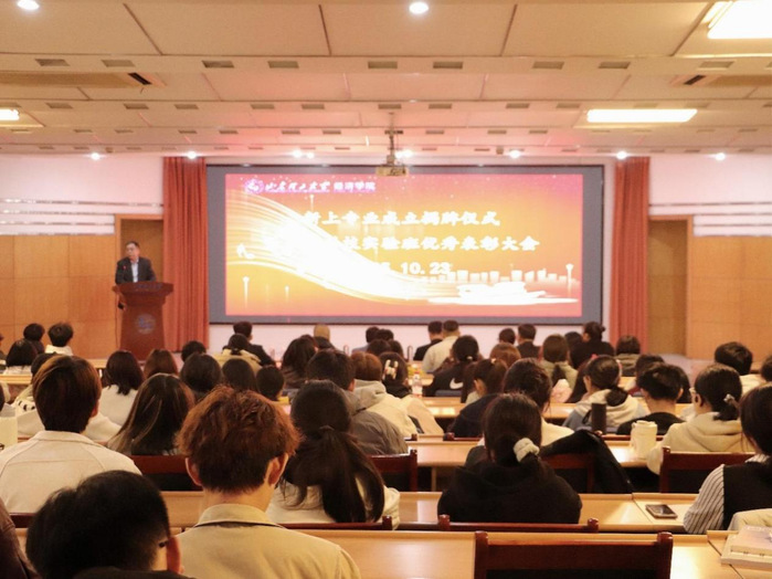 10月23日下午,经济学院在东校区图书馆报告厅举行数字经济系、金融科技系成立揭牌仪式暨金融科技实验班优秀学子表彰大会。学院领导班子成员、新设专业教师代表、金融科技实验班学生及数字经济专业2025级新生共同参会。会议由副院长周锐主持。