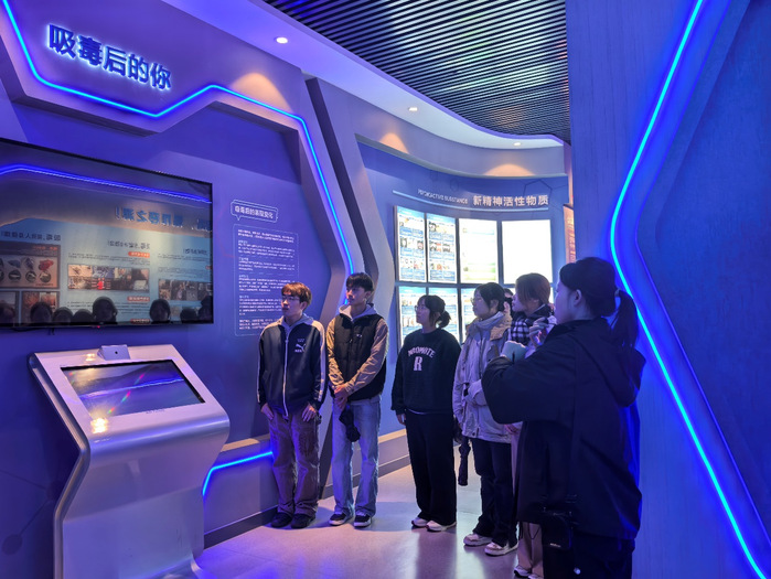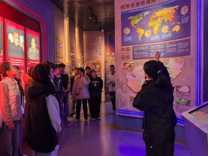在讲解员引导下,学生依次参观“中国禁毒史”“毒品知识”“毒品危害”等六大主题展厅。通过文献资料、动态影像、毒品样本、器官病变解剖模型、吸毒前后对比照片及家庭涉毒案例纪录片等,同学们直观了解了毒品隐蔽性、致命性及对个人、家庭、社会的破坏性。