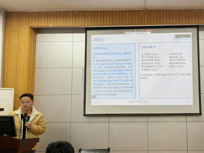 最后,对模型设定与样本来源进行了说明,详细解释了回归结果,并且基于相关结果提出了相应政策建议。互动环节中,与会学生积极提问,现场学术氛围浓厚。