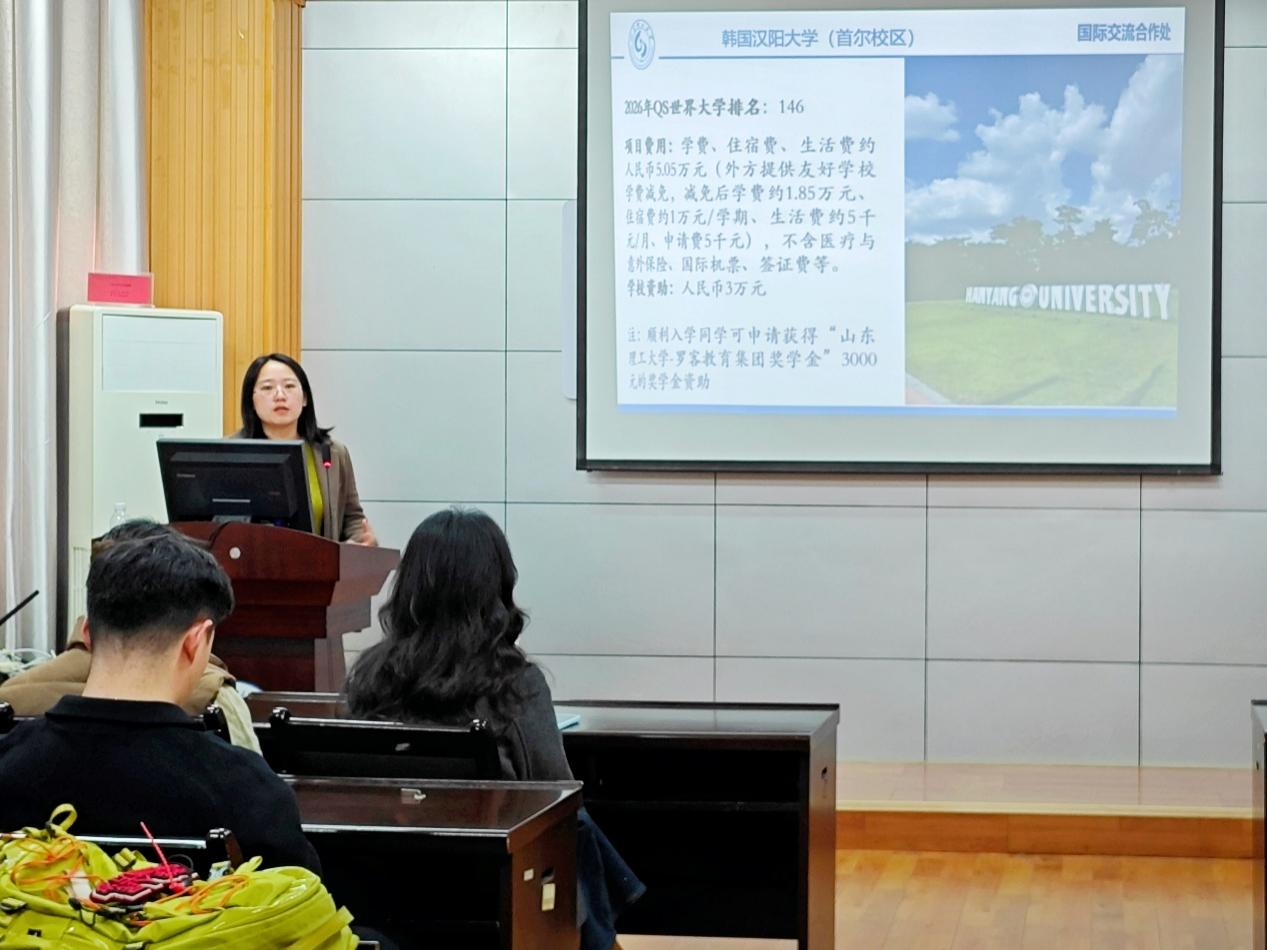 张贝贝系统介绍了2026年春季学期研究生出国(境)交流项目,她就项目概况、资助政策及校内申请流程等关键信息作了详细讲解。在随后的互动环节,她针对同学们现场提出的问题进行了细致解答,并鼓励大家把握机遇,积极申报。