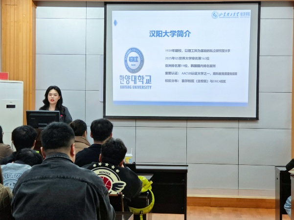随后,几位交换生代表先后发言,结合其海外求学经历进行分享。他们的介绍涵盖了课程学习、文化体验及行前准备等多个方面,为在场同学提供了全面而实用的第一手信息,对有意向参与交流项目的同学具有重要的参考价值。