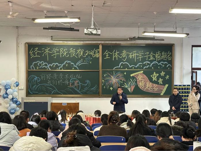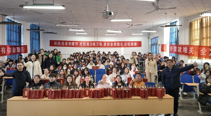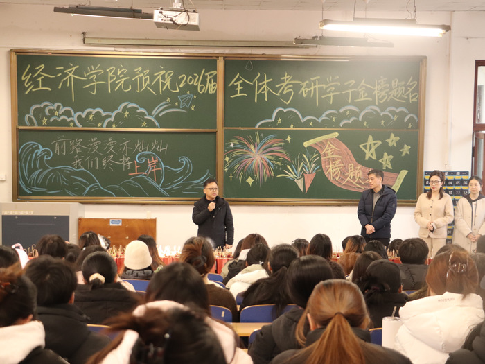 为助力2022级考研学子在冲刺阶段凝心聚力、决胜考场,12月9日下午,经济学院精心策划的考研加油活动在4教101教室温情启幕。学院班子成员、全体辅导员和2022级全体考研学生齐聚一堂,以殷切嘱托、暖心礼赠与真挚祝福,为逐梦路上的学子们注入奋进力量,让考研冲刺之路暖意盎然。