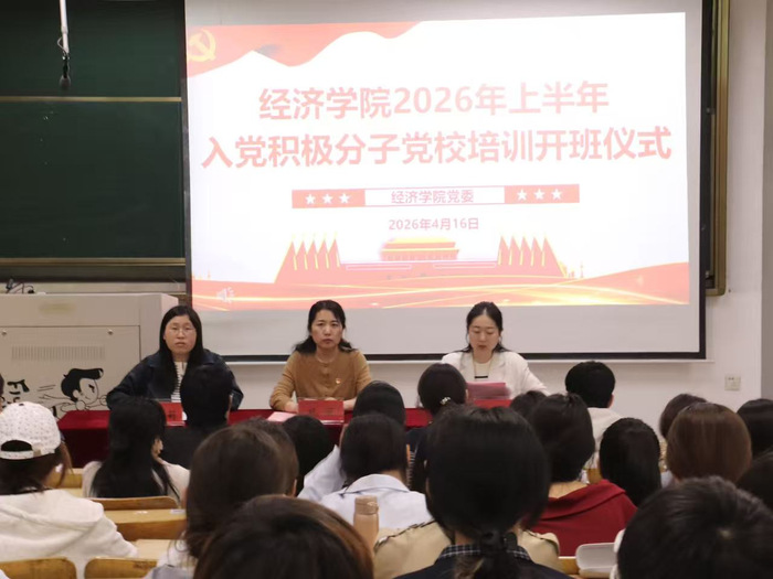 为深入学习贯彻习近平新时代中国特色社会主义思想,加强入党积极分子队伍建设,4月16日下午,经济学院于3号教学楼209教室举办2026年上半年入党积极分子党校培训开班仪式,学院党委副书记巩丽、团委书记毛婷出席,辅导员段小莉主持,110名入党积极分子参加。