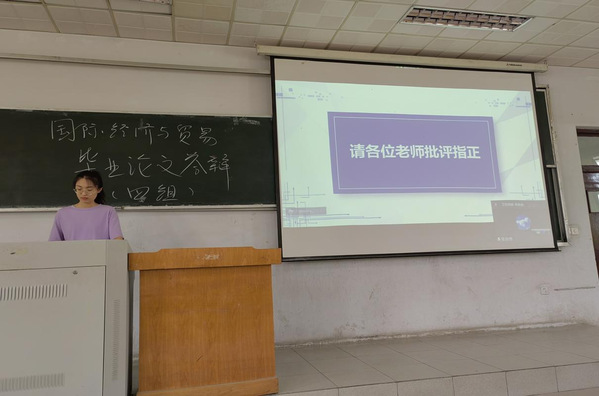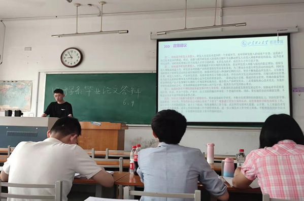 本届学生论文紧扣专业方向,选题丰富。围绕乡村振兴、低碳经济、金融发展、跨境电商等主题展开研究,充分体现了学生理论联系实际,分析和解决现实问题的能力。每位学生均从毕业论文的课题来源、研究意义、论文框架、创新价值及不足等方面作出简要陈述。答辩委员会专家就论文框架、研究思路、创新点等方面进行提问,有针对性地指出了论文中存在的问题,并提出了具体的指导意见。