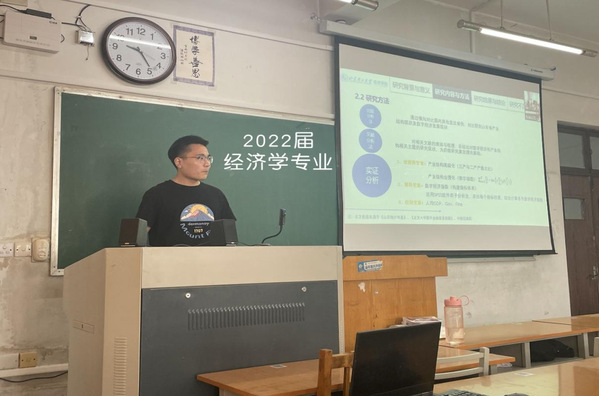 近日,经济学院圆满完成了2022届本科生毕业论文答辩工作。共485名同学参加了答辩。答辩环节分为两部分:一是学生15分钟左右的PPT论文陈述;二是评委现场提问。按疫情防控要求,本次答辩工作采取远程线上(主要借助腾讯会议)和校内线下相结合的形式通过PPT展示、视频共享等方式进行。