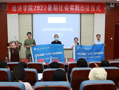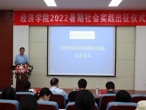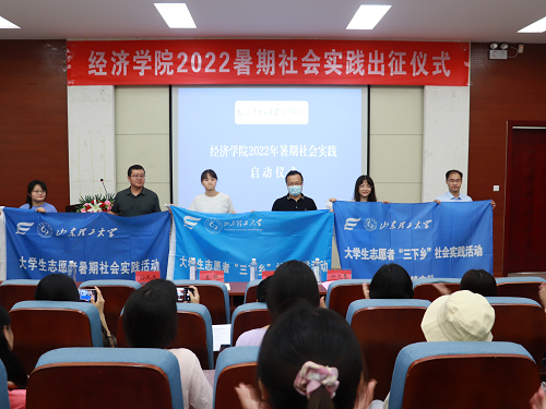 6月28日上午,经济学院举行2022年暑期社会实践出征仪式,仪式由院党委副书记孙兆扬主持,校团委书记王振、院党委书记张双、校团委实践部邱先慧、院团委书记孙兆风出席仪式,学院全体辅导员、各社会实践队代表以及班级代表参加。